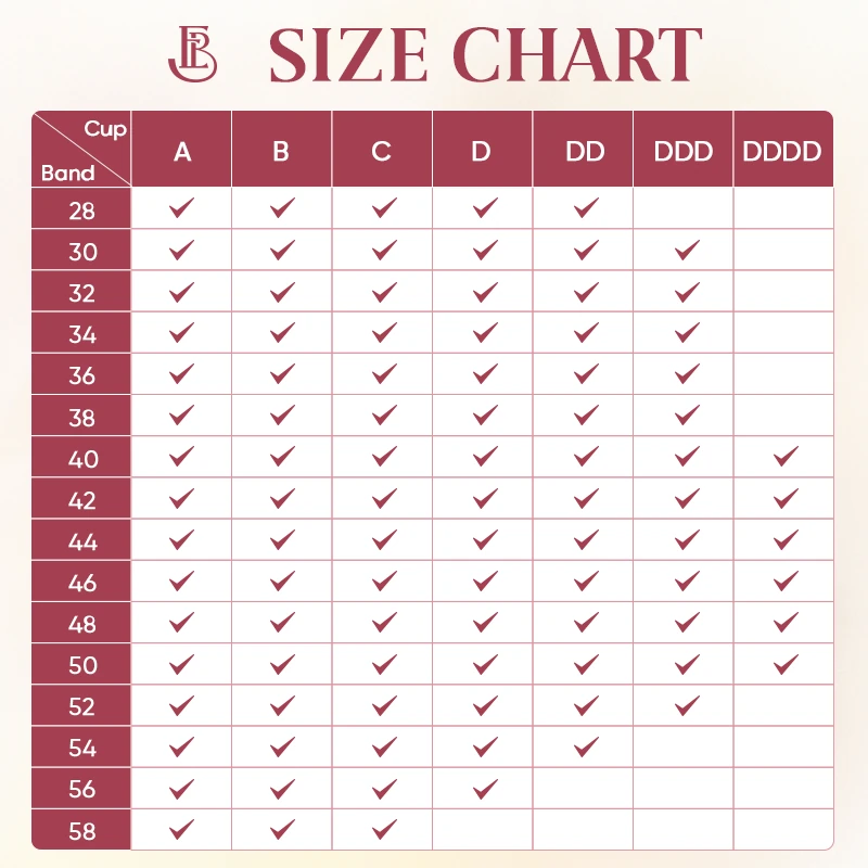 From Cup A to G! Band 28 to 58. Our wide range of sizes ensures a comfortable, supportive fit that flatters your shape.